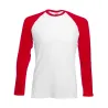 160 g/qm  100% Baumwolle (Belcoro® Garn)  1x1 geripptes, kontrastfarbenes Halsbündchen mit Elasthan  Lange Raglanärmel in Kontrastfarbe  Doppelnaht an Halsausschnitt, Ärmelabschluss und Bund  Schlauchware.